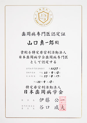 この資格を有する者は、歯周病学への深い知識と技能を有する歯科医師として厚生労働省によりその標榜が認められています。